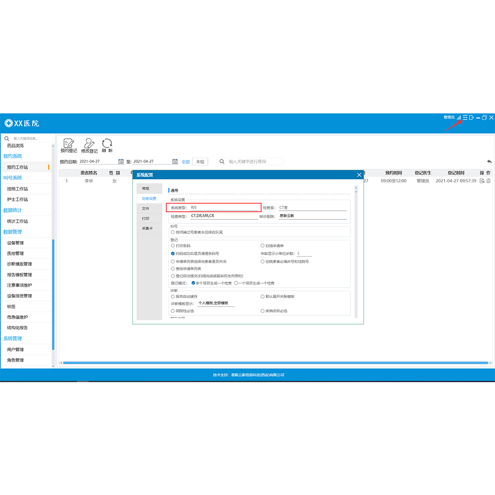 主要功能:门诊预约、住院预约、批量预约、特殊预约、项目维护、资源与排版维护。